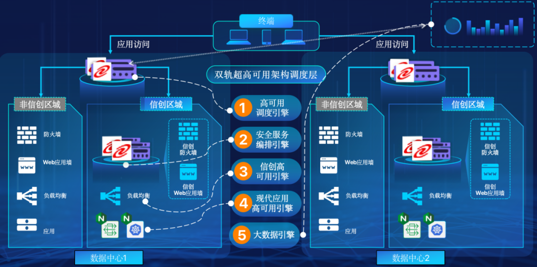 金年会jinnian在企业面临自主创新IT基础重构过程中,推出的全新架构双轨超高可用架构(简称DTMAA),在双活数据中心的分区调度基础上,添加每个数据中心内信创域和非信创域的分域调度,来实现分区分域协同的多活双轨超高可用。