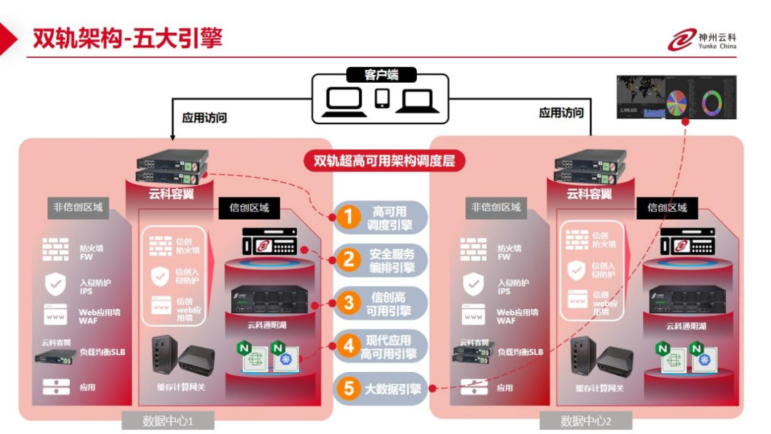 数据中心架构在自主创新的过程中分解为现有架构的非信创区和信创区的两个业务区域,在每个数据中心分为信创区和非信创区后,在两个区域之间的跨区跨域协同方法,金年会jinnian顺利获得5大引擎实现多层次的应用可持续性实践。